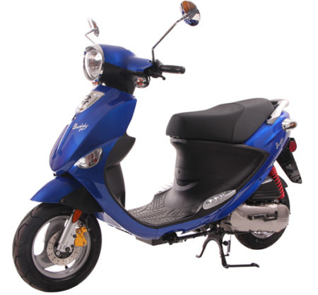 This vintage-inspired scooter comes in a variety of retro and contemporary colors, yet has plenty of modern features that include: under seat storage, a charger for your cell phone or iPod and a grocery bag hook. Don’t let the smaller engine fool you. This Buddy has 50cc and is great for every-day transportation. Run errands around town or cruise across a college campus. At 100 mpg†, you’ll spend less time at the pump and more time scooting around and falling in love.