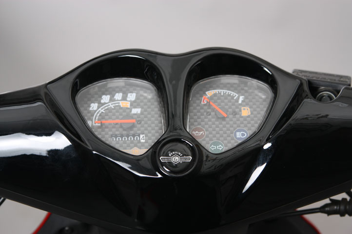 You asked for a set of wheels that’s tough, practical, sporty and fun. We delivered the Roughhouse 50! The Roughhouse 50 combines proven durability with penny-pinching 100mpg† economy, generous under seat storage, a bag hook for grocery runs and space for the recommended optional rear rack and locking top case. Weekend fun is made possible with a high performance 50cc engine and a set of slightly knobby tires that can handle the dirt road when the pavement ends. Mom said “Stop roughhousing!” but we ignored her!